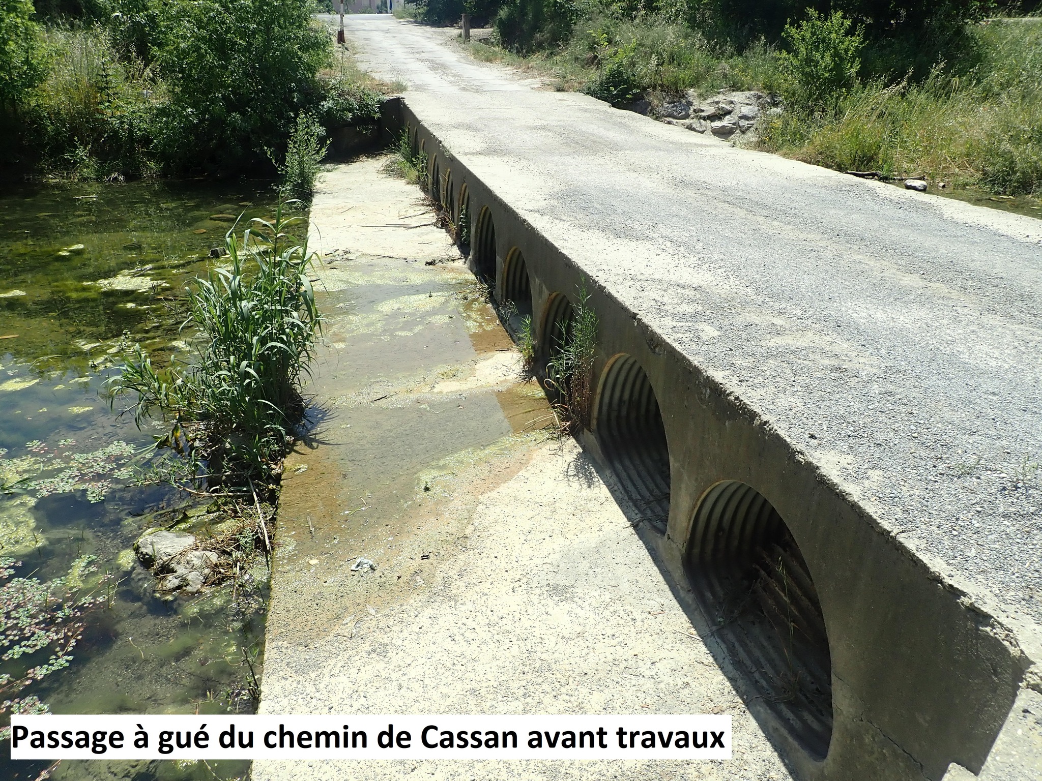 La section hydraulique a été augmentée afin de limiter l’impact de l’ouvrage sur les écoulements de la Thongue, et la chute présente en pied d’ouvrage a été supprimée pour laisser place à une pente douce qui ne pénalise pas la continuité écologique.