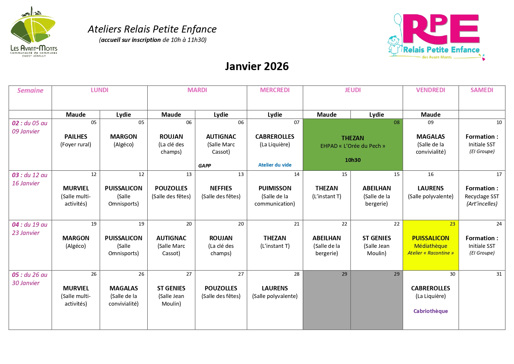Télécharger le planning – JANVIER 2026