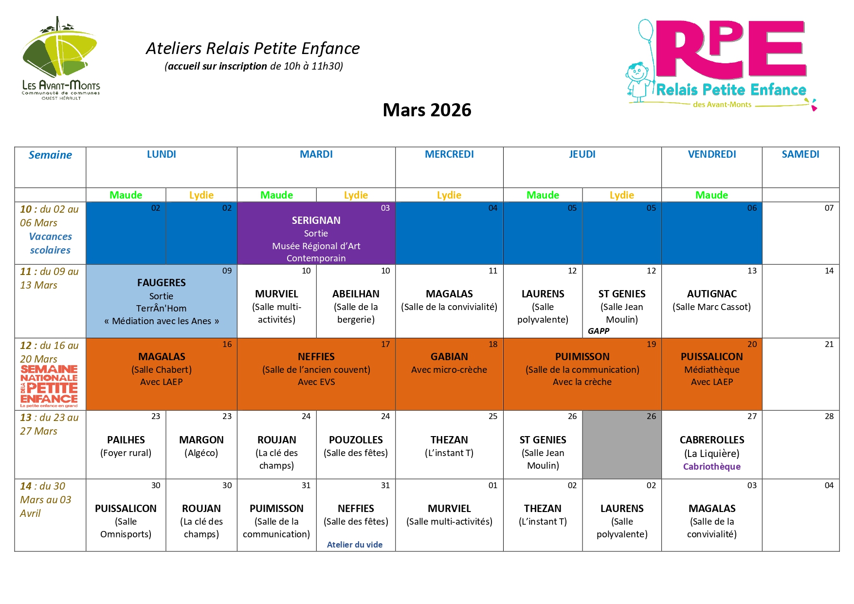 Télécharger le planning – MARS 2026